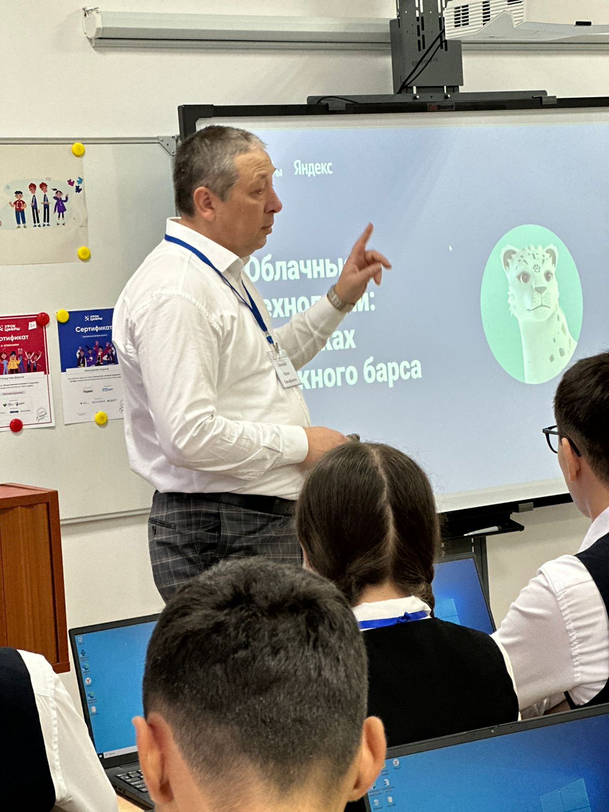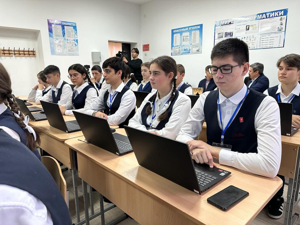"Урок цифры для учащихся 9 класса провел учитель информатики А.Х. Шомахов.
